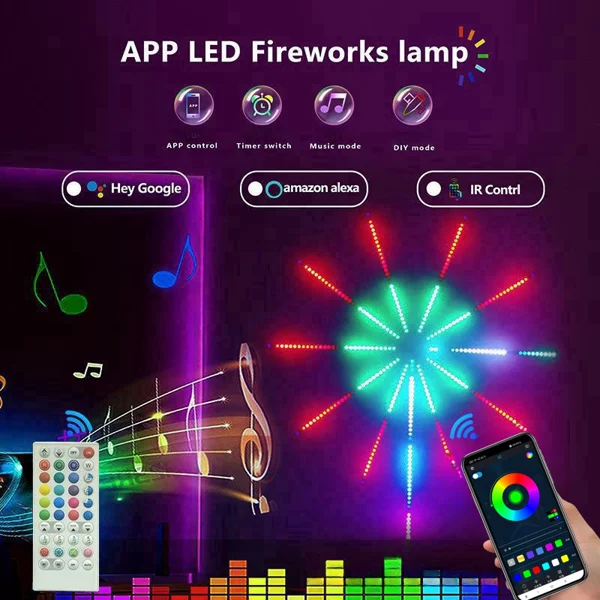 RGB fireworks light bar adds advanced IC chips that can display multiple colors at once like a rainbow, Suitable for home Christmas decoration, such as bedroom, room, kitchen, wall, stairs, wedding, living room, party, bar and festival, etc. Especially suitable for Christmas, Halloween, party and other festivals and events.